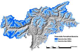 „Die Bedeutung des abschmelzenden Permafrosts in den alpinen und hochalpinen Gebirgsregionen als Gefahr für die bestehenden Infrastrukturen wie Straßen, Lifte, Seilbahnen und andere touristische Strukturen sowie Schutzhütten und Siedlungen wird uns immer dann bewusst, wenn diese Strukturen beschädigt werden oder auf Grund von Steinschlag oder Murabgängen nicht zugänglich sind“, sagt Mussner. Dass die Auswirkungen des abschmelzenden Permafrostes jedoch weit größer sind, als allgemein angenommen, zeigen die Untersuchungen des Projekts „PROALP“ das zur Gänze von der Landesregierung finanziert wurde und dessen Ergebnisse nun als Basis für diese alpenweite Initiative dienen. „Immerhin geht daraus hervor, dass etwa zwölf Prozent der Landesfläche potentielle Permafrostareale sind“, berichtet Landesrat Mussner. Aufsehen in der Fachwelt hat auch eine Publikation des geologischen Dienstes des Landes und der Universität Innsbruck erregt, in der nachgewiesen wird, dass der abschmelzende Permafrost für ungewöhnliche Schwermetallgehalte von Gebirgsseen und Quellen verantwortlich ist. Projektleiter Volkmar Mair erwartet sich nun vom neuen Projekt noch weitere wichtige Ergebnisse.
