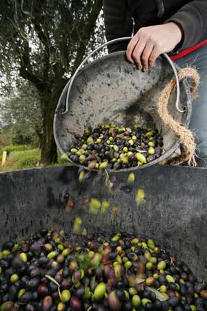 Ehe ein Ölbaum Früchte trägt, muss er mindestens sechs bis sieben Jahre alt werden. Geerntet wird im Spätherbst und Winter. Ein Ölbaum liefert zwischen fünf und fünfzig Kilogramm Oliven pro Jahr; das ergibt gerade einmal sechs Liter Öl. Die Früchte werden im traditionellen Verfahren in Ölmühlen kalt gepresst oder im kontinuierlichen Verfahren zerhackt, teils mit Wasser vermischt und das Öl durch Decanter und Zentrifugen aus der Ölmaische gewonnen, es entsteht das wertvolle native Olivenöl ("extra vergine"). Die Ölolive ist kleiner als die Speiseolive, hat weniger Fruchtfleisch und einen größeren Samen. Zudem sind Kultursorten der Öloliven frostresistenter als jene der Speiseoliven.