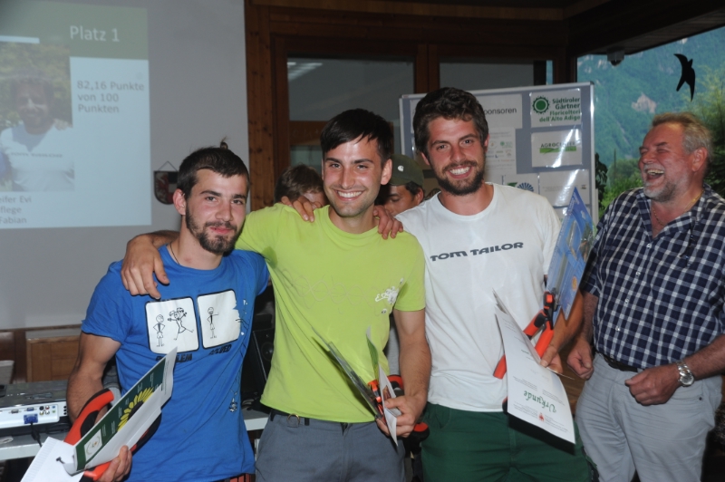 Der Einsatz und das Engagement der ersten sieben Teams wurde mit Sachpreisen belohnt. Einen besonderen Preis stellten die Vereinigung der Südtiroler Gärtner und der Junggärtner zur Verfügung. Sie ermöglichen es den Erstplatzierten, im September am österreichischen Berufswettbewerb in Vorarlberg teilzunehmen.