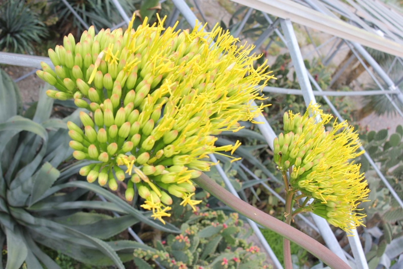 Die Exemplare in den Gärten von Schloss Trauttmansdorff gehören der Art der Agave americana an. Ihre Blütenstände sind bereits zwischen vier und fünf Metern hoch, und die ersten Blüten haben sich bereits zu öffnen begonnen. In den nächsten Tagen und Wochen lassen die Pflanzen die Gartenbesucherinnen und Gartenbesucher an diesem einmaligen Ereignis teilhaben.