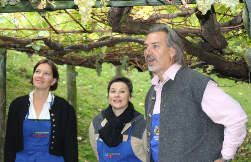 "Die Versoaln-Rebe", wies heute Heike Platter von Schloss Trauttmansdorff hin, "stellt ein außergewöhnliches Kulturerbe Südtirols dar: Aus den Trauben werden jährlich zusammen mit den Trauben der umliegenden 120 Jahre alten Reben an die 300 Flaschen Wein in limitierter Auflage produziert, die man unter anderem im Rahmen der Gärten & Wein-Führung verkosten kann."