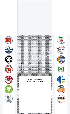 Zehn Tage noch bis zur Wahl des neuen Südtiroler Landtags und nun liegt auch der Stimmzettel vor, den jeder Wähler am Sonntag, 27. Oktober, erhalten wird. Darauf abgedruckt sind die 14 Symbole der wahlwerbenden Listen und vier leere Zeilen, die für die Vorzugsstimmen vorgesehen sind.
