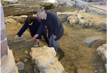 Ende dieser Woche werden die archäologischen Grabungen des Landesamts für Bodendenkmäler in der Alten Pfarrkirche von Schenna beendet. Neben Münzen und Keramikteilen sowie einer Gewandspange wurden zwei Gebäude aus der Römerzeit und eine Kirche aus dem frühen Mittelalter ausgegraben. LR Florian Mussner hat sich heute, 14. März, vor Ort mit Archäologin Catrin Marzoli die Ausgrabungen angeschaut.