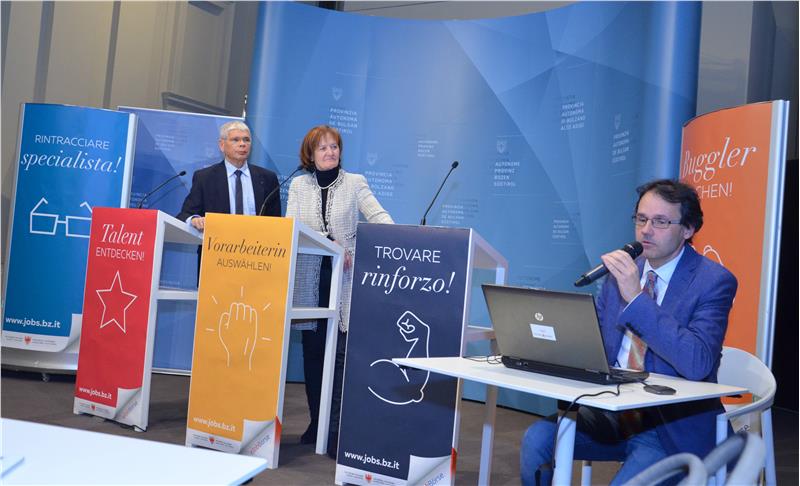 Die bisherige Arbeitsbörse – eine der meistbesuchten Internetseiten der Landesverwaltung – ist in dieser Woche als überarbeitete Jobbörse mit zahlreichen neuen Funktionen für Arbeitssuchende und für Arbeitgeber online gegangen. Bei einer Pressekonferenz am heutigen Donnerstag haben Arbeitslandesrätin Martha Stocker, der Direktor der Landesabteilung Arbeit Helmuth Sinn und der Direktor des Landesamtes für Arbeitsmarktbeobachtung Stefan Luther sowohl die neue Jobbörse, als auch die überarbeitete Internetseite der Abteilung Arbeit vorgestellt.