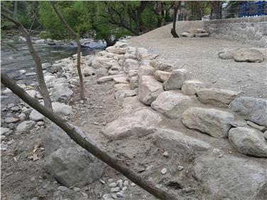 Gleichzeitig mit diesen vom Amt für Wildbach- und Lawinenverbauung West durchgeführten Arbeiten hat die Gemeinde Meran die Gelegenheit genutzt, auf der wiederrichteten Mauerkrone ein neues historisches Geländer anzubringen, eine neue öffentliche Beleuchtung zu realisieren sowie Teile des Winterpromenadenpflasters wiederherzustellen.