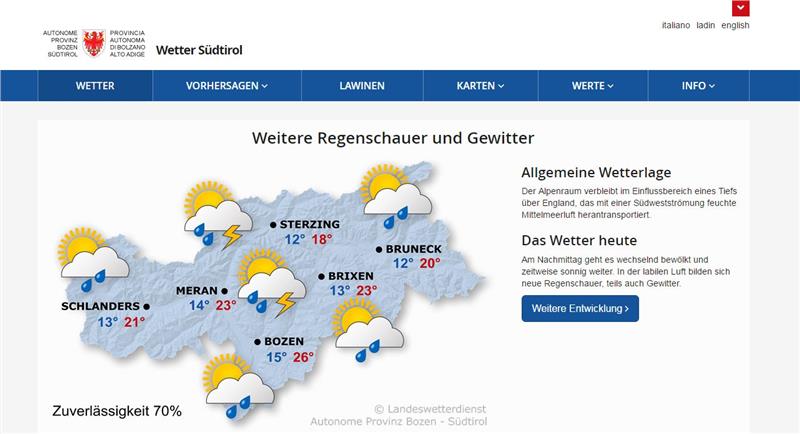 Die Wetter- und Lawinenvorhersagen sind die meistgeklickten Internetseiten der Landesverwaltung; die Wetter-Homepage wurde jetzt überarbeitet.