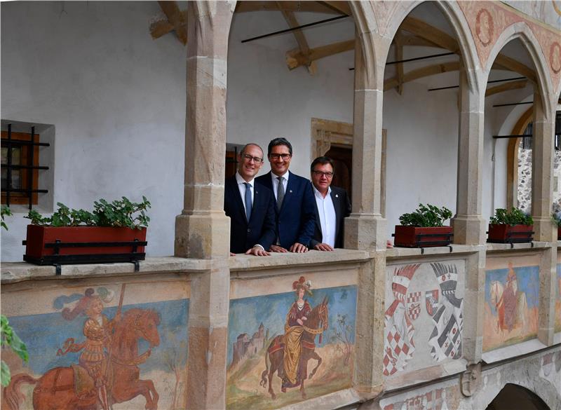 Für eine gemeinsame und nachhaltige Verkehrspolitik auf der Brennerachse hatten sich die Landeshauptleute der drei Euregio-Länder bei dem Verkehrsgipfel im vergangenen Jänner in München ausgesprochen. Im Mittelpunkt soll dabei die Verlagerung des Schwerverkehrs von der Straße auf die Schiene stehen. Diesen gemeinsamen Standpunkt bekräftigte der Vorstand des Europäischen Verbunds für territoriale Zusammenarbeit EVTZ "Europaregion Tirol-Südtirol-Trentino" bei seiner heutigen 17. Sitzung auf Schloss Prösels bei Völs am Schlern, wo sich der Vorstand auch auf eine Reihe gemeinsamer Projekte verständigte-