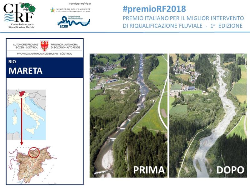 Mit dem erstmals verliehenen Preis für Fließgewässer-Revitalisierungsarbeiten wurden die Arbeiten am Mareiter Bach bei Sterzing bedacht. Die Prämierung für die staatsweit besten Projekte der Fließgewässerrevitalisierung erfolgte im Rahmen der vierten italienischen Konferenz zur Fließgewässerrevitalisierung: Die Agentur für Bevölkerungsschutz wurde für ihre Arbeiten am Mareiter Bach in der Gemeinde Ratschings mit dem ersten Preis ausgezeichnet. Die Arbeiten waren zwischen 2008 und 2010 durchgeführt worden.