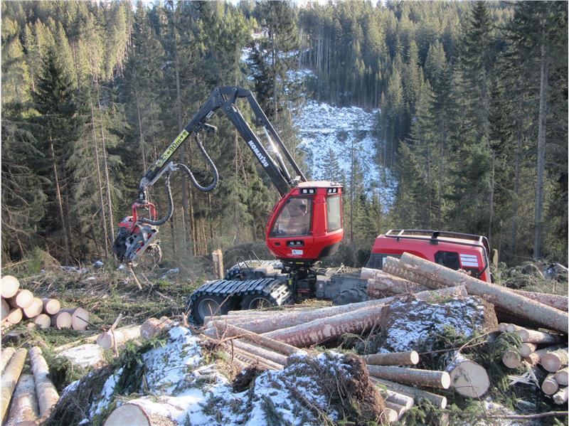 Dank des Einsatzes von hochmechanisierten Bringungsmethoden wie Harvester (Holzernte-Maschinen, die Stämme entasten, entrinden und auf einem Forwarder ablegen) und Forwarder (Rückezug oder Tragrückeschlepper) schreitet die Räumung auch zügig voran.