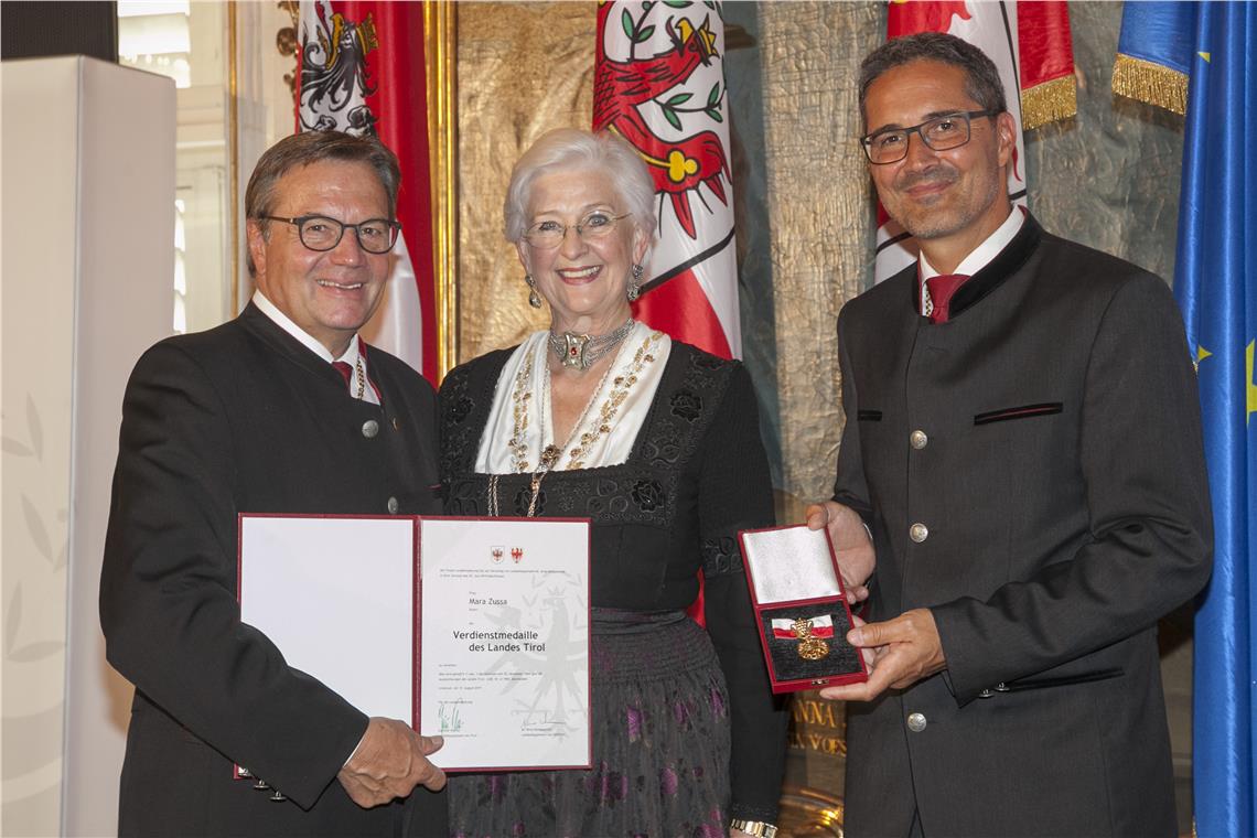 Über 200 Persönlichkeiten, darunter 42 aus Südtirol, haben LH Kompatscher und LH Platter am 15. August in Innsbruck für ihre Verdienste mit Kreuzen und Medaillen ausgezeichnet.