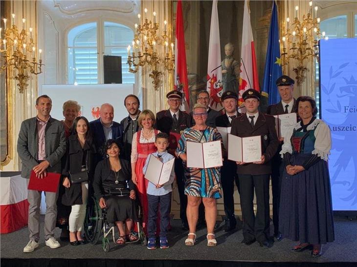Sich für das Gemeinwohl einsetzen und anderen helfen - Diese Lebenseinstellung zeichnet viele Menschen in Südtirol und Tirol aus. Traditionell stehen diese Personen am Hochunserfrauentag in Südtirol und Tirol im Mittelpunkt. So haben die Landeshauptleute von Südtirol und Tirol Arno Kompatscher und Günther Platter heute, 15. August, in der Hofburg in Innsbruck rund 200 Männer und Frauen aus Nord-, Ost- und Südtirol für ihr Engagement zum Wohl der Allgemeinheit ausgezeichnet. Neun verdiente Menschen aus Südtirol wurden mit dem Verdienstkreuz und somit der dritthöchsten Auszeichnung des Landes Tirol geehrt: Reinhard Demetz, Karl Fink, Helmut Groschup, Heinz Gutweniger, Regina Holzer, Fernanda Mattedi Tschager, Walter Mitterrutzner, Renate Mühlögger Tschager, Hiltraud Neuhauser Erschbaumer und Johann Passler. 27 verdiente Südtirol wurden mit der Verdienstmedaille ausgezeichnet (siehe Anlage).
