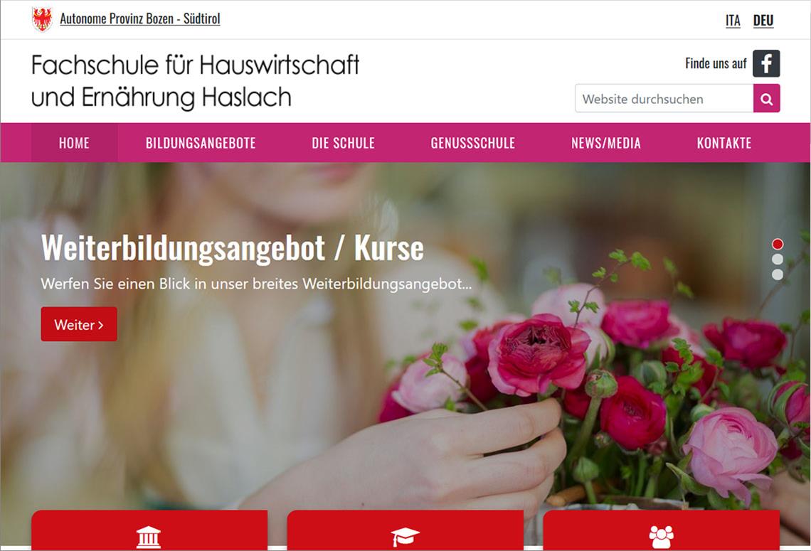Seit kurzem sind die neuen Webportale der Fachschule für Obst-, Wein- und Gartenbau Laimburg und der Fachschule für Hauswirtschaft und Ernährung Haslach online. Unter dem einheitlichen Dach des Landes Südtirols und in einem zeitgemäßen Layout präsentieren sie ihre Angebote. Weiter 19 deutsch- und 7 italienischsprachige Berufsschulen erhalten in den nächsten Monaten einen neuen Webauftritt. Bildungsdirektor Gustav Tschenett zeigt sich erfreut darüber: "Wir sind stolz darauf, nun mit modernen Webseiten die Kompetenz der Berufs- und Fachschulen zu präsentieren. Die Webseiten sind das Schaufenster in unsere Schulen und die Basis für die Kommunikation mit unseren Schülerinnen und Schülern." Überzeugt vom Ergebnis sind auch die Direktoren der Fachschulen Laimburg und Haslach Paul Mair und Gudrun Ladurner. "Wir können nun die vielfältigen Angebote der Schule in einem zeitgemäßen Layout und in übersichtlicher Weise darstellen", so Mair. "Wir freuen uns über den neuen Webauftritt, der unser umfangreiches Bildungsangebot benutzerfreundlich darstellt und Einblick in das Geschehen unseres Bildungsbetriebes gibt," ergänzt Ladurner.