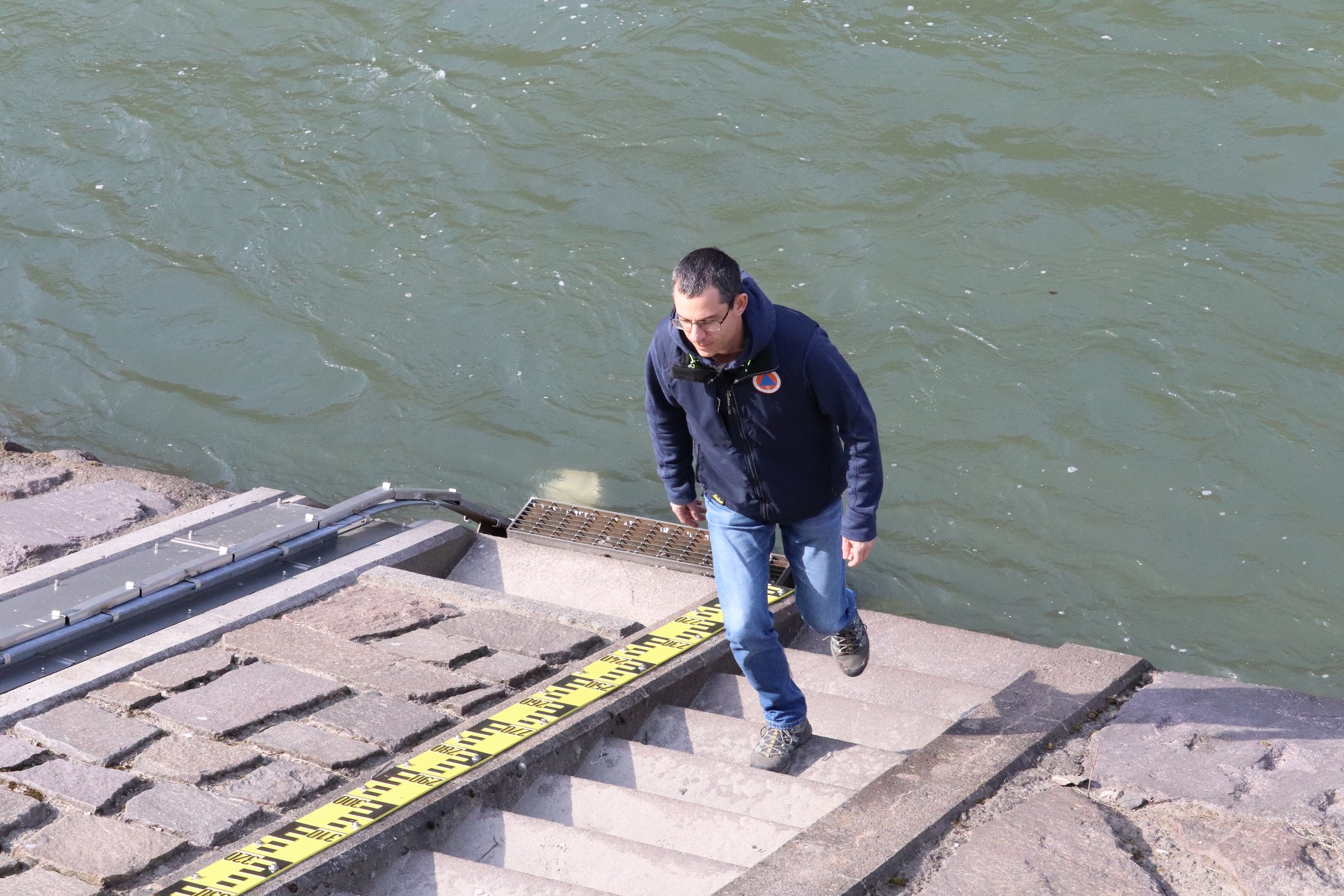 - Die Pegelmessstelle am orografisch linken Ufer des Eisacks im Süden Bozens besteht seit 2003 und wurde im Laufe der Zeit viermal erweitert, auf der gegenüberliegenden Flussseite steht ein Infopoint, erläutert Stefan Ghetta vom Amt für Hydrologie und Stauanlagen in der Agentur für Bevölkerungsschutz. (Foto: LPA/Maja Clara) » [IMG 2 MB]