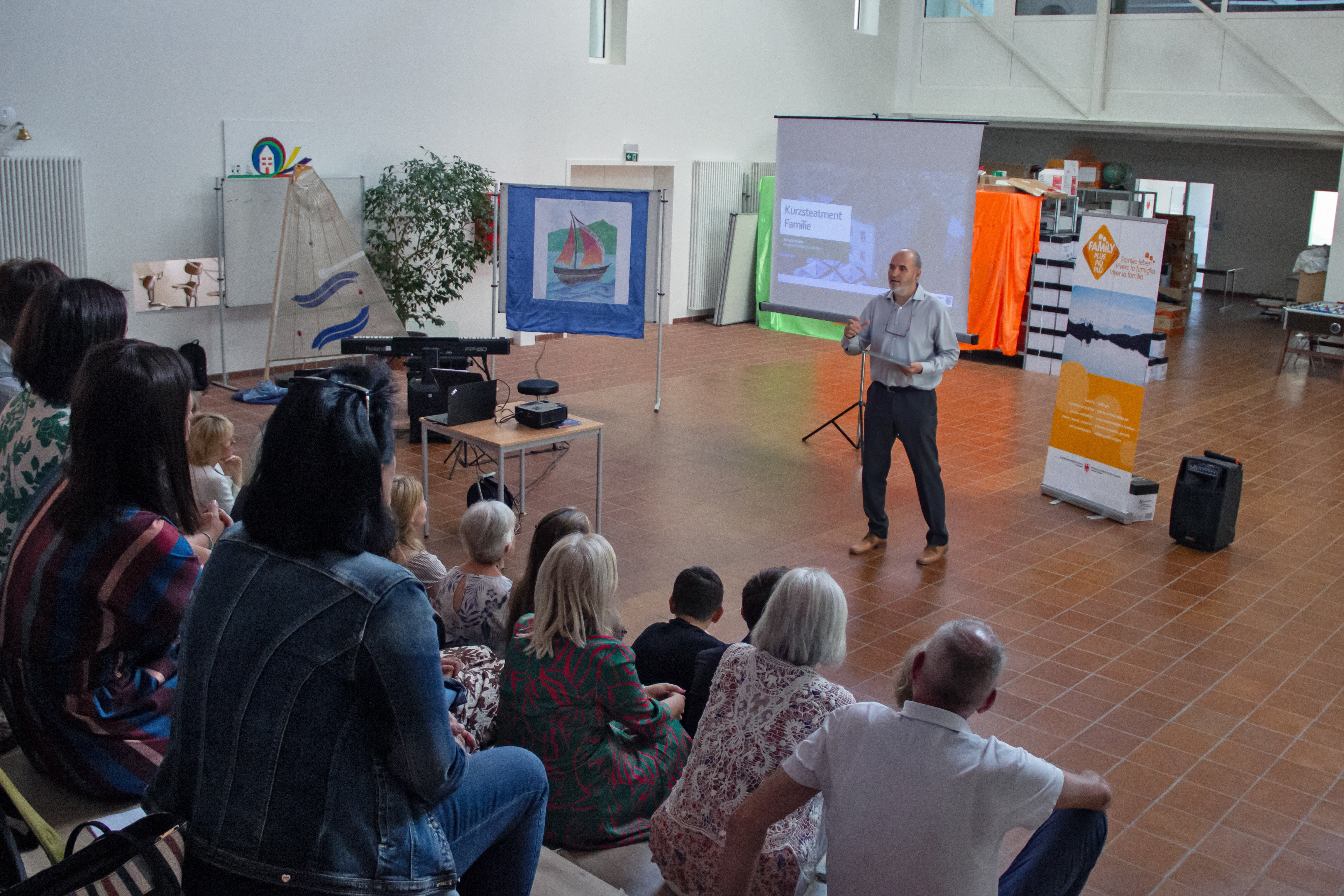 Der Weg zum Zertifikat führte über eine Analyse des Status Quo in insgesamt neun Handlungsfeldern, die von der Mobilität über das Miteinander der Generationen, von Gesundheit und Soziales bis zu Freizeit und Kultur reichen. Kalterns Vizebürgermeister, der die heutige Feier moderierte, führte an, dass es wichtig gewesen sei, möglichst viele Menschen einzubeziehen: "Es gibt viele Menschen, die unsere Gemeinde mit Leben, mit Familie füllen. Sie in diesem Auditierungsprozess dabei zu haben, war uns sehr wichtig." Auch für Kalterns Bürgermeisterin gehe es darum, Familien auf allen Ebenen und in allen Lebenslagen unterstützend zur Seite zu stehen. Stellvertretend für die vielen Mitwirkenden berichteten Ariane Prantl (Mitarbeiterin Elki Kaltern), Silvia Casar (Ortsstellenleiterin KFS), Konrad Pichler (Direktor der Musikschule Kaltern) und Karla Florian (Schulstellenleiterin Mittelschule Kaltern) über diverse umgesetzte Initiativen und die dahinterstehende Motivation, sich für Familien vor Ort einzusetzen. Der Ort der Verleihung war nicht zufällig gewählt, sei es doch einer jener Orte, an denen Kinder-, Jugend- und Familienleben stattfinden, hielt der Vizebürgermeister fest. Musikalisch umrahmt wurde die Feier von Schülerinnen und Schülern der Musikschule Kaltern.