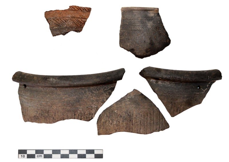 - Bei den Grabungsarbeiten wurden Teile von Keramikgefäßen gefunden, diese gehörten zum Alltagsgeschirr der Siedlerinnen und Siedler. (Foto: LPA/Amt für Archäologie) » [IMG 850 kB]