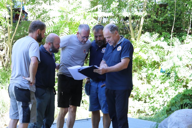 - Wildbachverbauer bei der Fischhälterung im Haarwaal beim neuen Flusspark an der Passer in Meran (von links): Lukas Haller, Michael Ennemoser, Hansjörg Haller, Vorarbeiter Thomas Pichler, Amtsdirektor Peter Egger (Foto: LPA/Maja Clara) » [IMG 2 MB]