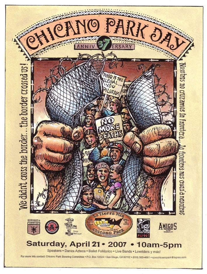 Michael Falser beleuchtet unter anderem den Chicano Park im südkalifornischen San Diego/USA, wo eine mexikanisch-amerikanische Arbeitergemeinde Ausgrenzungspolitik mit monumentalen Graffiti-Kunstwerken begegnet. (Grafik: Chicano Park Steering Committee)