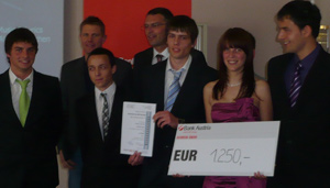 Wettbewerbssieger wurde die Projektgruppe "Energy Surface" der Klasse 5E der Handelsoberschule Bruneck. Sie sicherte sich mit ihrem Fußbodenmechanismus, der mit Power Panels Strom erzeugt, nicht nur den Geldpreis von 1.250 Euro, sondern auch - für ein Jahr lang - den Wanderpokal.