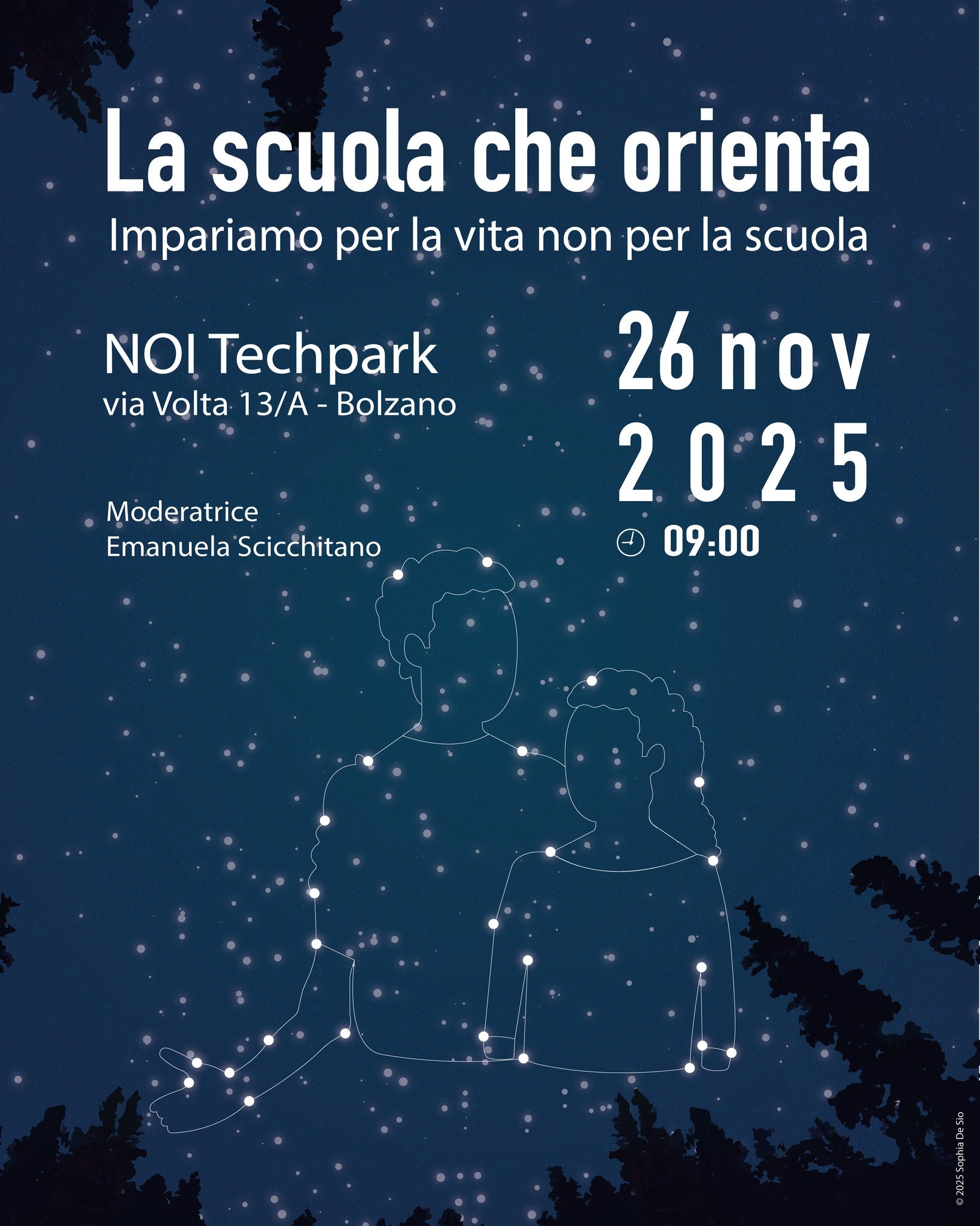 Docenti, dirigenti ed esperti a confronto sul tema dell’orientamento scolastico come processo continuo e integrato all'interno del curriculum. Appuntamento al NOI Techpark il 26 novembre.