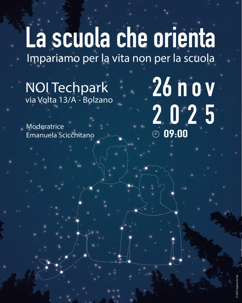 BOLZANO (USP). "La Scuola che orienta" è il titolo dato al momento di approfondimento organizzato dalla Direzione Istruzione e Formazione italiana nel quale docenti ed esperti, riuniti per una mattinata al NOI Techpark, si confronteranno sul tema dell’orientamento scolastico come un processo continuo e integrato all'interno del curriculum, per promuovere consapevolezza di sé, autonomia e progettualità. Un processo pedagogico continuo e trasversale, che richiede il coinvolgimento attivo della scuola, della famiglia e del territorio.