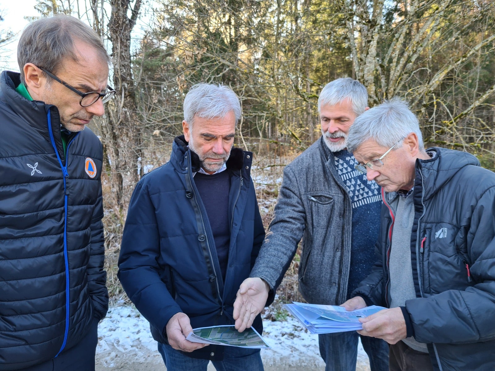 - Un altro momento del sopralluogo a Falzes: nella foto (da sinistra) il direttore dell'Agenzia per la protezione civile Klaus Unterweger, l'assessore provinciale Arnold Schuler, il tecnico Martin Moser e il consigliere comunale Silvester Regele (Foto: ASP/Agenzia per la protezione civile/Judith Weissensteiner) » [IMG 621 kB]