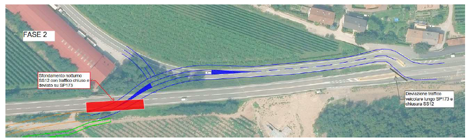Da venerdì 21 luglio (ore 19.00) a sabato 22 luglio (ore 12.00), la SS 12 sarà completamente interrotta, con una deviazione su larga scala attraverso l'Autostrada del Brennero (A22) e una deviazione locale attraverso la strada comunale di Bronzolo. La strozzatura in paese sarà regolata manualmente.