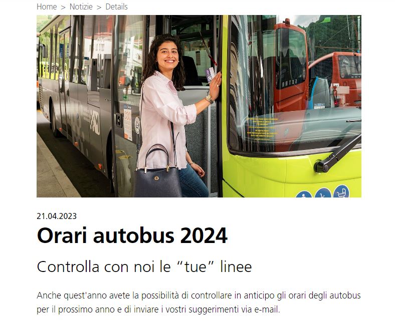 Al via la cosiddetta procedura degli orari degli autobus per l'anno 2024: gli utenti sono invitati a presentare suggerimenti e commenti entro il 7 maggio