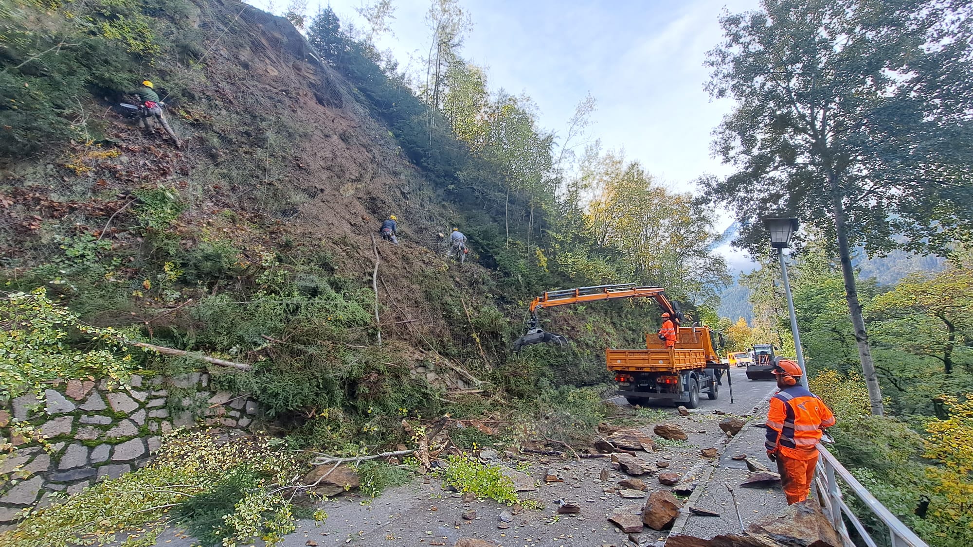 - Il Servizio strade provinciale ha registrato molti danni ai terrapieni stradali in questi giorni; la foto è stata scattata ieri pomeriggio a Laion. (Foto: ASP/Servizio strade) » [IMG 547 kB]