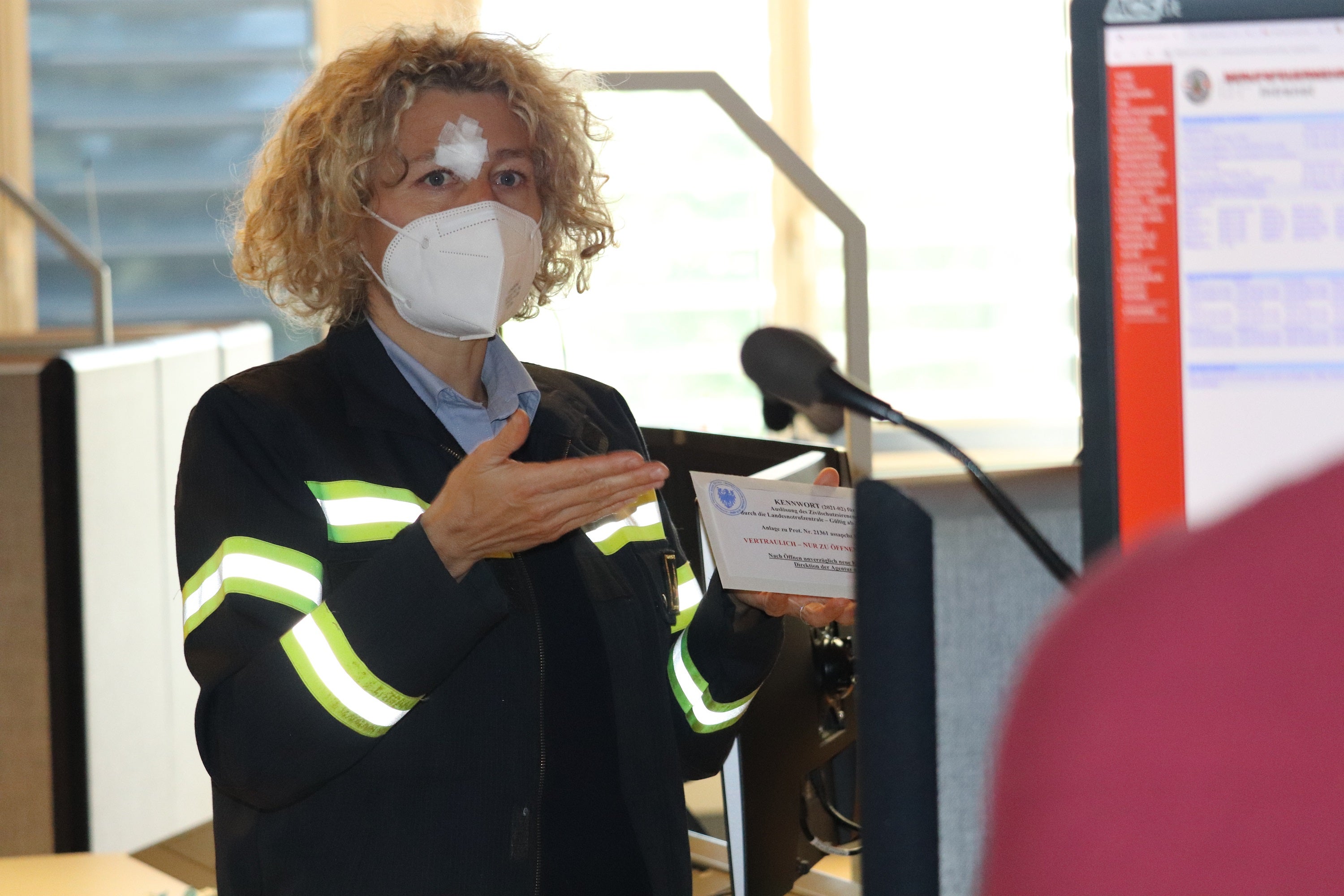 - Francesca Monti del Corpo permanente dei Vigili del fuoco ha portato la busta chiusa con la password alla Centrale d'emergenza (Foto: ASP / Maja Clara) » [IMG 1 MB]