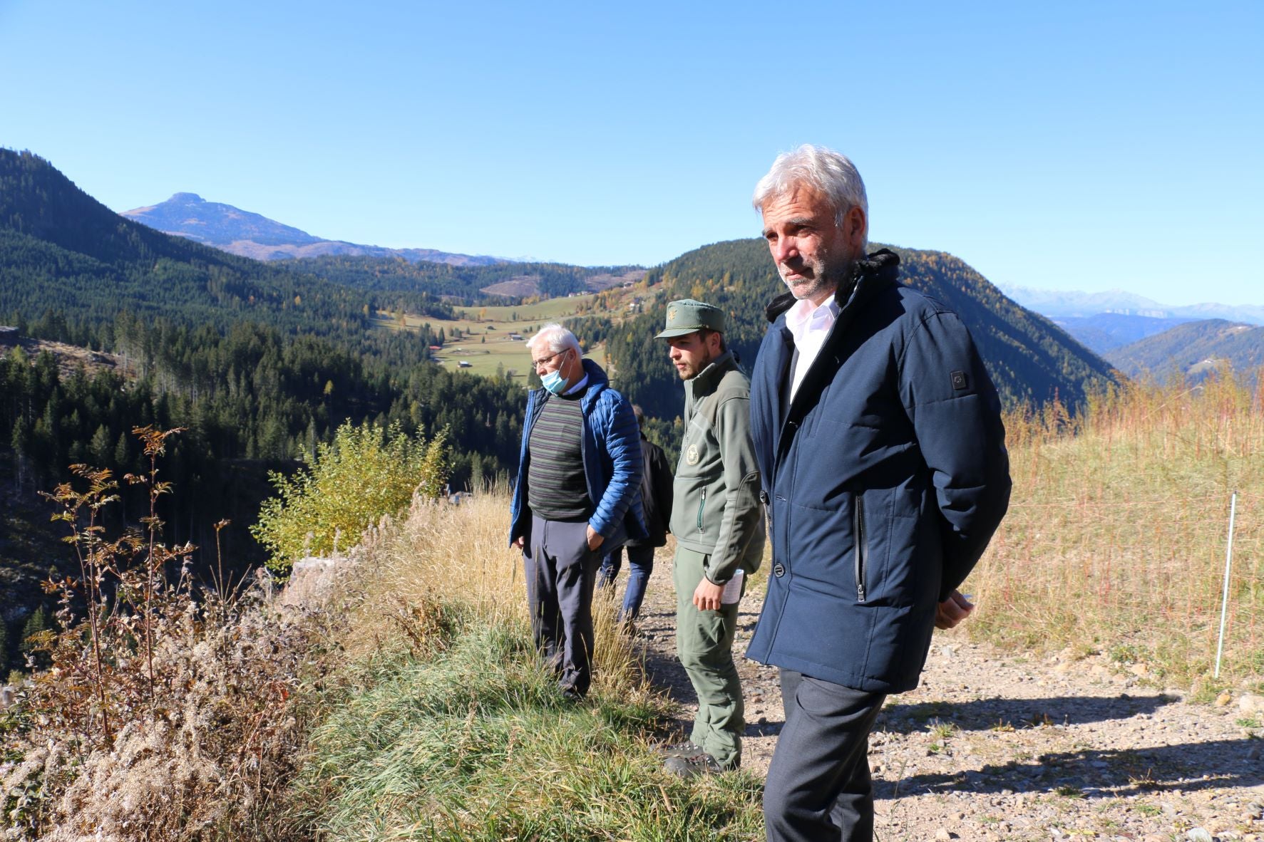 - "Il bilancio è positivo e questo ci rende orgogliosi" afferma l'assessore Schuler durante un sopralluogo nella zona del Latemar (Foto: ASP/Noemi Prinoth) » [IMG 8 MB]