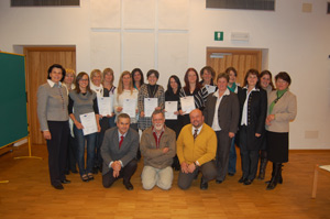 Im Bild vorne von links: Stefan Walder, Martin Achmüller, Seppl Lamprecht, dahinter von links: Maria Kuenzer, Mechthild von Spinn, Barbara Ladurner, Anita Gerstgrasser, Petra Raich, Margit Gögele, Barbara Wolf, Elisabeth Fischnaller, Renate Pezzei, Karoline Zöggeler, Magdalena Arquin, Maria Egger, Renate Kofler, Maria Haller, Irene Menz, Dorothea Zöschg