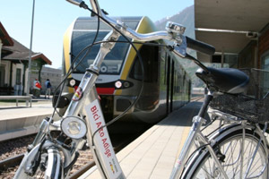"Einerseits", legt Widmann dar, "kann man mit dem Kombiticket bikemobil Card alle Busse und Bahnen im Land nutzen und zudem ein Leihfahrrad mieten, das an einem beliebigen der beteiligten Radverleihe - meist in den Bahnhöfen selbst - zurückgegeben werden kann. Damit erübrigt sich der Transport im Zug."