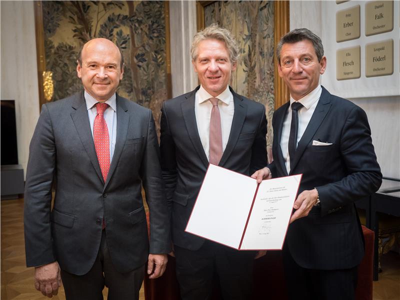 Ein Vertreter des österreichischen Bundesministers Gernot Blümel und der Direktor der Wiener Staatsoper Dominique Meyer haben Hans Peter Kammerer heute (18. Juni) Nachmittag die Urkunde über die Verleihung des Berufstitels Kammersänger überreicht. Kulturlandesrat Philipp Achammer gratuliert zu dieser besonderen Auszeichnung: Diese, unterstreicht er, "wird nicht nur für eine einmalige künstlerische Glanzleistung verliehen, sondern für einen langen künstlerischen Weg – eine außergewöhnliche Würdigung, auf die Hans Peter Kammerer, aber auch unser Land stolz sein kann".